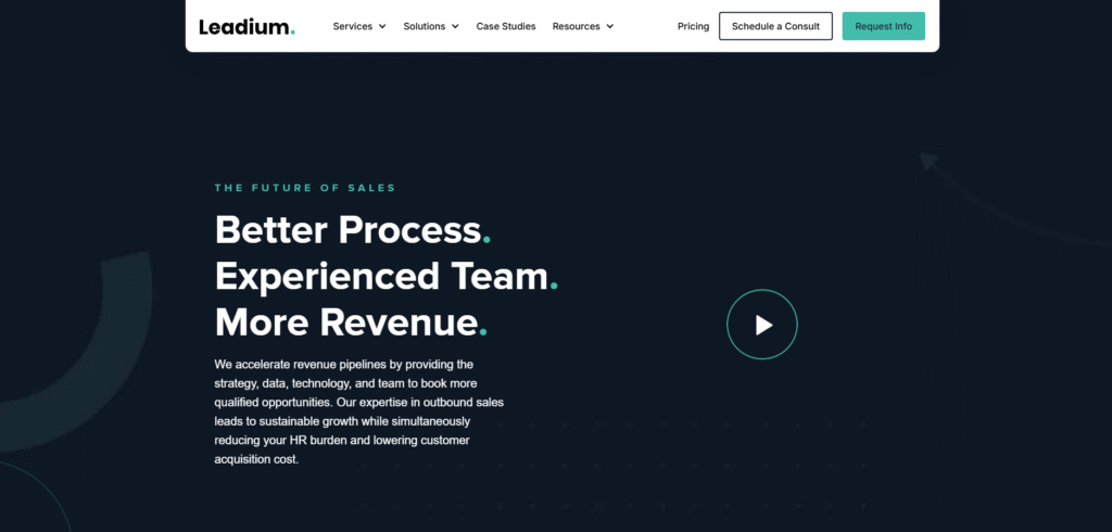 Leadium is a full-service appointment setting company that offers end-to-end lead generation services. From identifying prospects to scheduling appointments, they have a process that ensures you’re connected with high-potential clients. Leadium focuses on using data analytics to enhance targeting and segmentation, ensuring your leads are a perfect fit for your business.